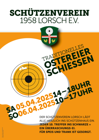 Auch dieses Jahr findet wieder unser allseits beliebtes traditionelles Ostereierschießen statt. Wir werfen den Grill an, es gibt Pommes, Lorscher Drayß-Bier vom Fass